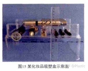 这是美容套装的吸塑托盘,吸塑高度达到100毫米,穴位数量较多,而且深浅不一,需要在清晰 展示产品的同时,也能起到很好的保护作用。如图15所示。