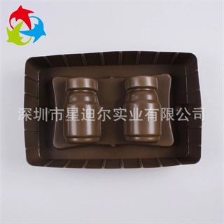 依据产品形状定制的植绒吸塑泡壳,能够完美跟形产品大小,和药瓶贴合度好;植绒吸塑泡壳所用材质环保无公害,可降解性强,对环境无污染;植绒吸塑泡壳颜色乌色,有便于顾客购买时的挑选;植绒吸塑泡壳采用内托设计形式,方便安放和取出,便于产品销售时展示。