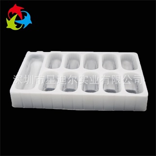 本款产品是吸塑加工厂依据客户提供的实物和相关要求而是设计定做的一款吸塑制品,采用环保本色PP材质为原材料,在保证对环境无公害的同时也能便于客户在购买时的挑选。PP吸塑托盘采用独特的内托设计形式使产品看上去更加美观,便于装多个产品,节省空间,节约成本。
