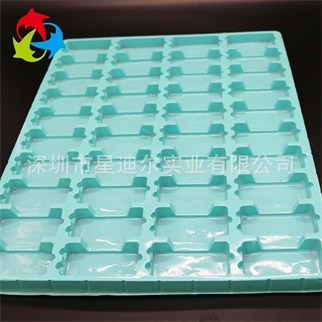本款产品是深圳吸塑加工厂依据客户提供的实物以及相关要求而是设计定做的一款吸塑产品,采用环保PET材质,在保证对环境无公害的同时也能便于客户在购买时的挑选。五金吸塑托盘颜色为绿色,托盘的设计形式使产品看上去更加美观,有利于雄塑制品的实物的销售和展示,同时能够节省空间,节约成本。