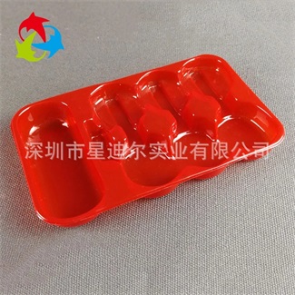 本款产品由拥有一流生产设备、具有十分丰富生产经验的深圳吸塑厂依据客户提供的实物以及相关要求而自行设计定做的一款吸塑产品。红色PVC吸塑内托采用环保红色PVC片材为原材料,经热加工处理后成型的吸塑制品,能够在保证对环境无公害的同时也便于客户在购买时的挑选。红色PVC吸塑内托独特的设计形式使产品看上去更加美观,便于吸塑制品在销售中的展示。