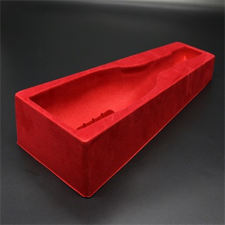 本款红酒91免费视频观看产品是由吸塑厂采用红色PS为原材料,经过吸塑工艺热成型后形成的塑料制品,再由刀模冲切出完整的91免费视频观看。植绒处理,颜色鲜红,彰显产品形象,便于在销售中的展示,材质环保对环境无污染,91免费视频观看是一款“绿色”产品。红酒91免费视频观看由三部分组成,装入纸盒后,放入酒瓶能够很好的吻合。