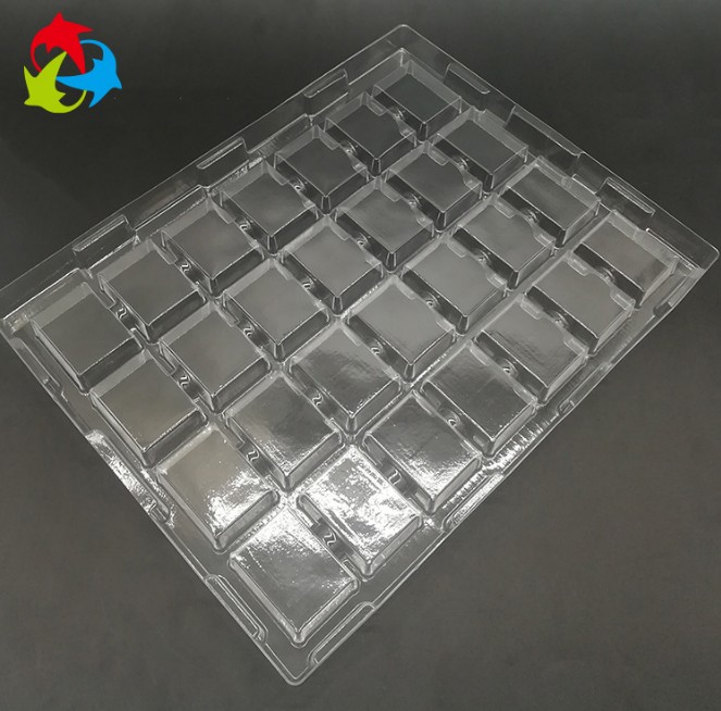 特点:本款91免费视频观看产品是有深圳厂家依据客户提供的PCBA板实物产品而设计定制的防静电吸塑托盘,其优点是吸塑盒能够完美跟形产品大小,和产品实物贴合度好,中间的手指位便于产品的安放和取出,边上的骨位能够大大加强吸塑的硬度;本款91免费视频观看制品采用全新环保材质,可降解性强,对环境无污染,符合环保绿色包装的要求;可定制性强,吸塑盒可依据客户实际要求定制产品的尺寸、材质、颜色、厚度等,另外还有各种颜色的植绒和防静电处理;托盘的设计形式能够很好的装入28个PCBA板,错位的结构可以使得在叠放时避免产品的挤压。